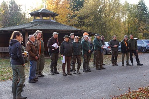 Das Prüfungswochenende wurde begleitet durch den traditionellen Vortrag am Vorabend. Frau Anja Blank (Revierjagdmeisterin und Mitglied des Präsidiums des JGHVs) hielt einen sehr gut besuchten Vortrag zum Thema "Ausbildung und Einsatz von Kadaversuchhunden".